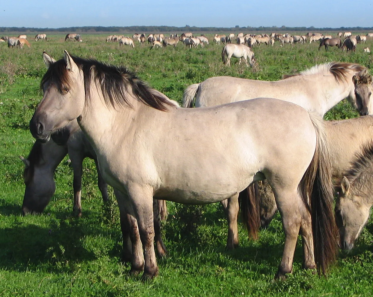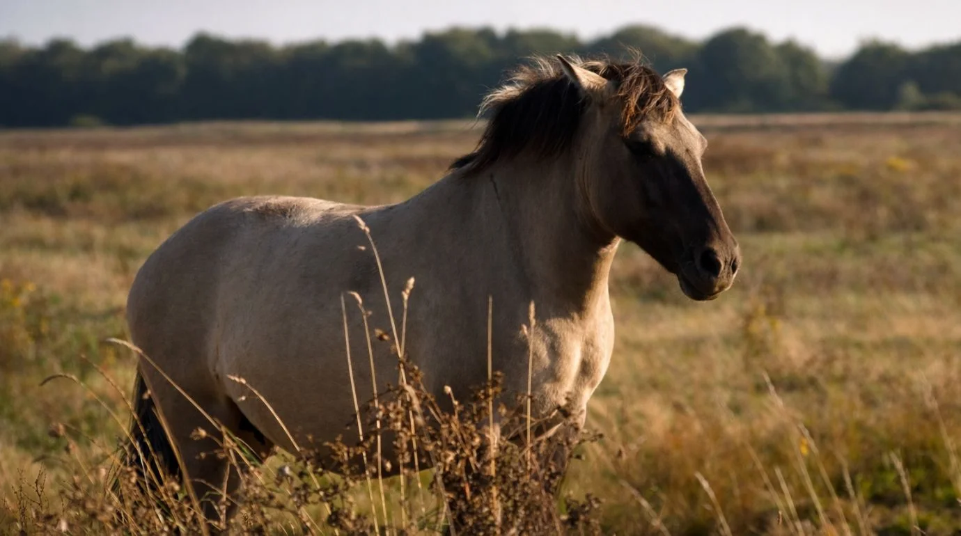A cor que muda com a estaçãoA pelagem cinza-rato do Konik não é uniforme ao longo do ano. Fica mais clara e quase branca no inverno, e mais amarelada no verão. Pesquisadores sugerem que essa mudança foi uma adaptação de camuflagem - o cavalo se tornava invisível na neve e se misturava às gramíneas douradas.